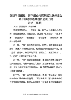 在新华日报社,新华报业传媒集团发展务虚会暨干部述职述廉述责述法上的讲话(摘要).docx