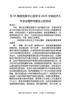 在XX集团党委中心组学习2025中央经济工作会议精神专题会上的讲话.docx