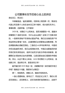 公司董事长在节后收心会上的讲话.docx