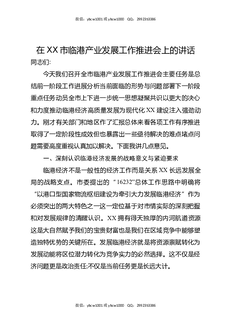 在XX市临港产业发展工作推进会上的讲话.docx