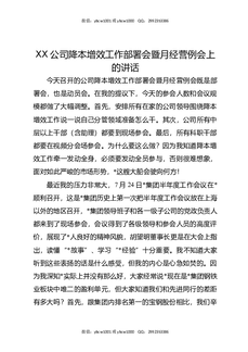 XX公司降本增效工作部署会暨月经营例会上的讲话.docx