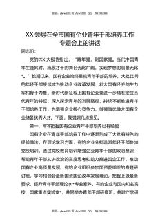 XX领导在全市国有企业青年干部培养工作专题会上的讲话.docx