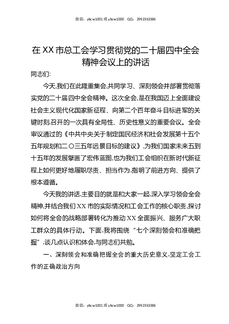 在XX市总工会学习贯彻党的二十届四中全会精神会议上的讲话.docx