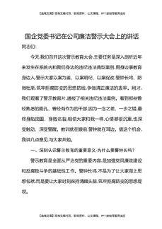国企党委书记在公司廉洁警示大会上的讲话.docx