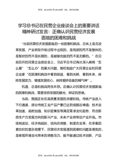 学习总书记在民营企业座谈会上的重要讲话精神研讨发言:正确认识民营经济发展面临的困难和挑战.docx