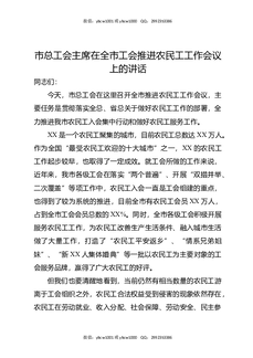 市总工会主席在全市工会推进农民工工作会议上的讲话.docx