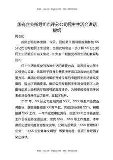 国有企业指导组点评分公司民主生活会讲话提纲.doc