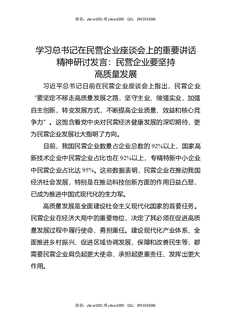 学习总书记在民营企业座谈会上的重要讲话精神研讨发言:民营企业要坚持高质量发展.docx