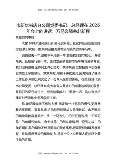 市新华书店分公司党委书记,总经理在2026年会上的讲话:万马奔腾共赴新程.docx