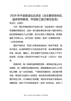 2026年干部荣退仪式讲话(含主要领导讲话,退休领导寄语,年轻职工接力表态发言).docx