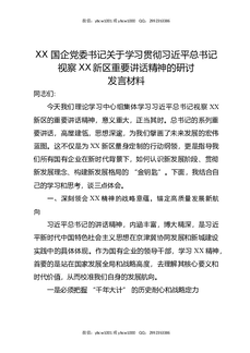 XX国企党委书记关于学习贯彻习近平总书记视察XX新区重要讲话精神的研讨发言材料.docx