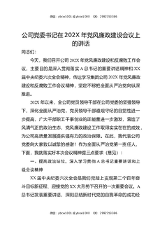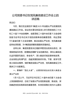 公司党委书记在202X年党风廉政建设会议上的讲话.docx