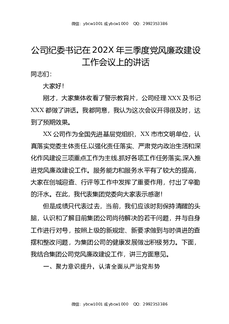 公司纪委书记在202X年三季度党风廉政建设工作会议上的讲话.docx