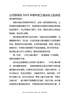 公司领导在202X年青年员工座谈会上的讲话.docx