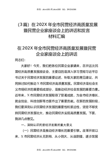 (3篇)在202X年全市民营经济高质量发展暨民营企业家座谈会上的讲话和发言材料汇编.docx