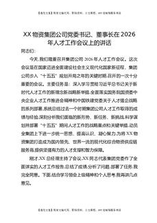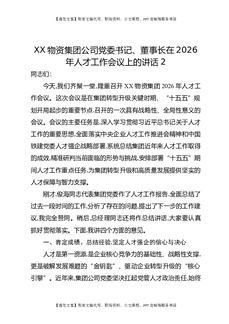 XX物资集团公司党委书记、董事长在2026年人才工作会议上的讲话2.docx