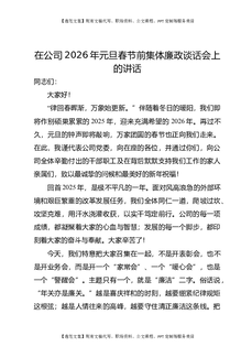 在2026年公司“元旦”“春节”节前廉政谈话会议上的讲话.docx