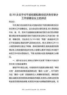 在XX乡关于村干部任期和离任经济责任审计工作部署会议上的讲话.docx