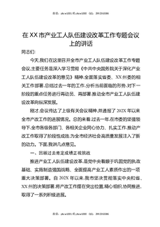 在XX市产业工人队伍建设改革工作专题会议上的讲话.docx