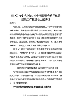 在XX市支持小微企业融资暨社会信用体系建设工作推进会上的讲话.docx