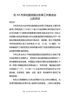 在XX市深化国资国企改革工作推进会上的讲话.docx