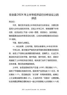 在全县202X年上半年经济运行分析会议上的讲话.docx