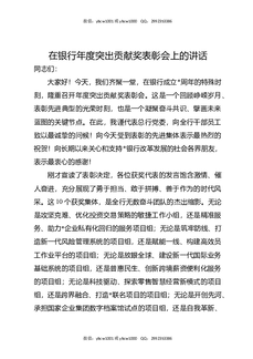在银行年度突出贡献奖表彰会上的讲话.docx