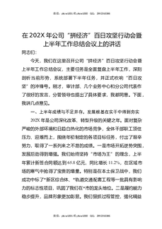 在202X年公司“拼经济”百日攻坚行动会暨上半年工作总结会议上的讲话.docx
