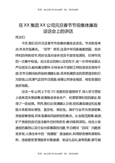 在XX集团XX公司元旦春节节前集体廉政谈话会上的讲话.docx