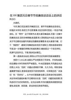在XX集团元旦春节节前廉政谈话会上的讲话.docx
