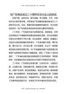 在广东商会成立二十周年纪念大会上的讲话.docx