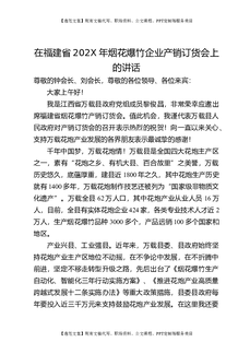 在福建省202X年烟花爆竹企业产销订货会上的讲话.doc