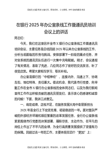 在银行办公室条线工作暨通讯员培训会议上的讲话.docx