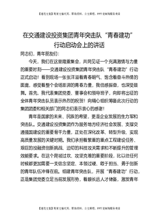 在交通建设投资集团青年突击队“青春建功”行动启动会上的讲话.docx