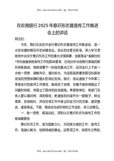 在农商银行2025年意识形态暨宣传工作推进会上的讲话.docx