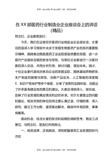在XX部医药行业制造业企业座谈会上的讲话(精品).docx