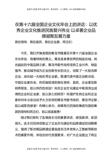 在第十六届全国企业文化年会上的讲话:以优秀企业文化推进民族复兴伟业以卓著企业品牌凝聚发展力量.docx