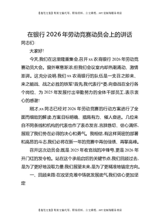 在银行2026年劳动竞赛动员会上的讲话.docx