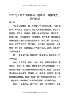 在公司人才工作部署会上的讲话:唯实惟先,善作善成.docx