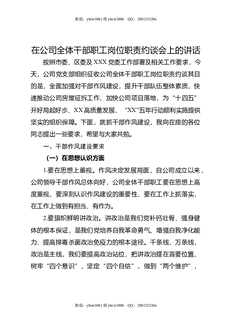 在公司全体干部职工岗位职责约谈会上的讲话.docx