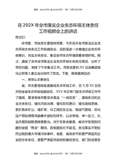 在202X年全市落实企业生态环保主体责任工作视频会上的讲话.docx