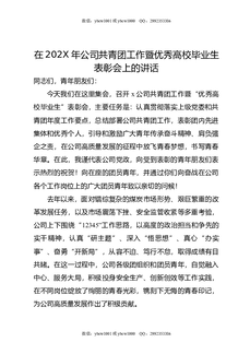在202X年公司共青团工作暨优秀高校毕业生表彰会上的讲话.docx