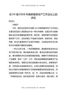 在XX镇2026年春耕备耕生产工作会议上的讲话.docx