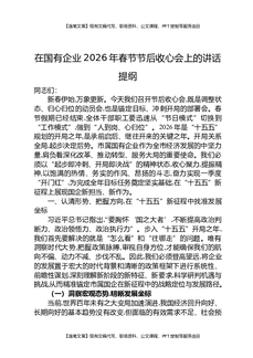 在国有企业2026年春节节后收心会上的讲话提纲.docx