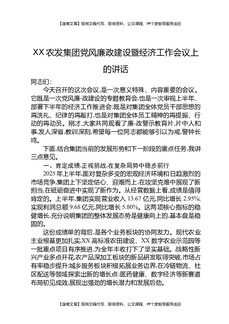 XX农发集团党风廉政建设暨经济工作会议上的讲话.docx