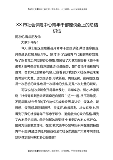 XX市社会保险中心青年干部座谈会上的总结讲话.docx