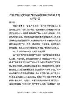 在参加银行党支部2025年度组织生活会上的点评讲话.docx