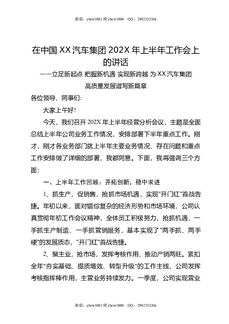 在中国XX汽车集团202X年上半年工作会上的讲话.docx