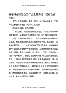 在依法依规治企工作会上的讲话(国有企业).docx