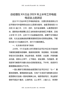 总经理在XX行业202X年上半年工作电视电话会上的讲话.docx